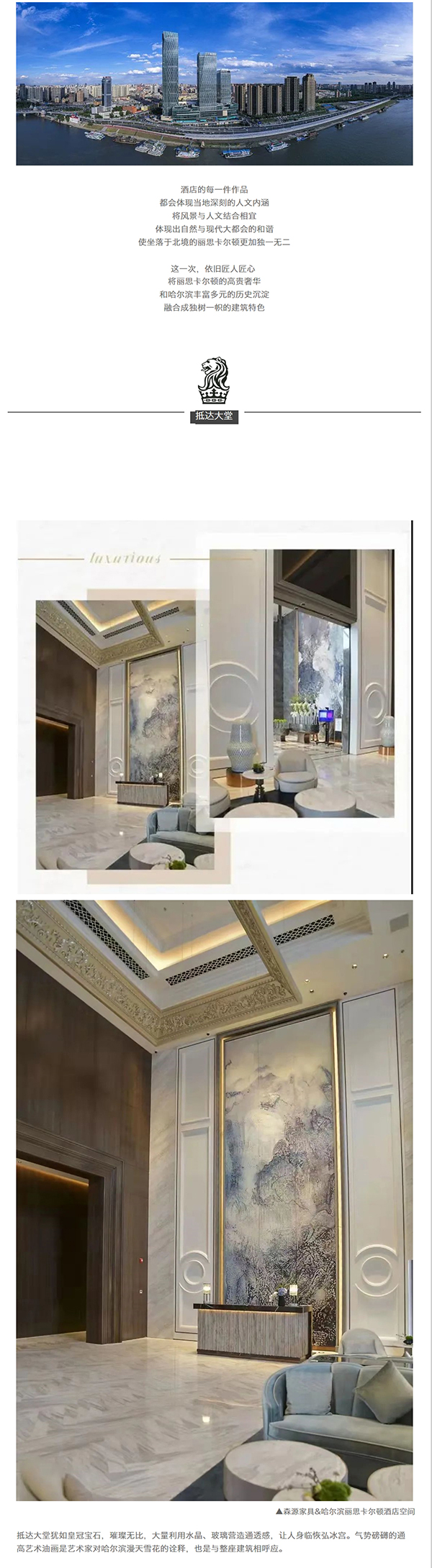哈爾濱麗思卡爾頓酒店THE RITZ-CARLTON HARBINl 隆重登場,其出奇的光芒頓時亮出了北部**酒店奢圈,十分感謝富力集團,森源家具重磅打造酒店核心版塊的定制家具。