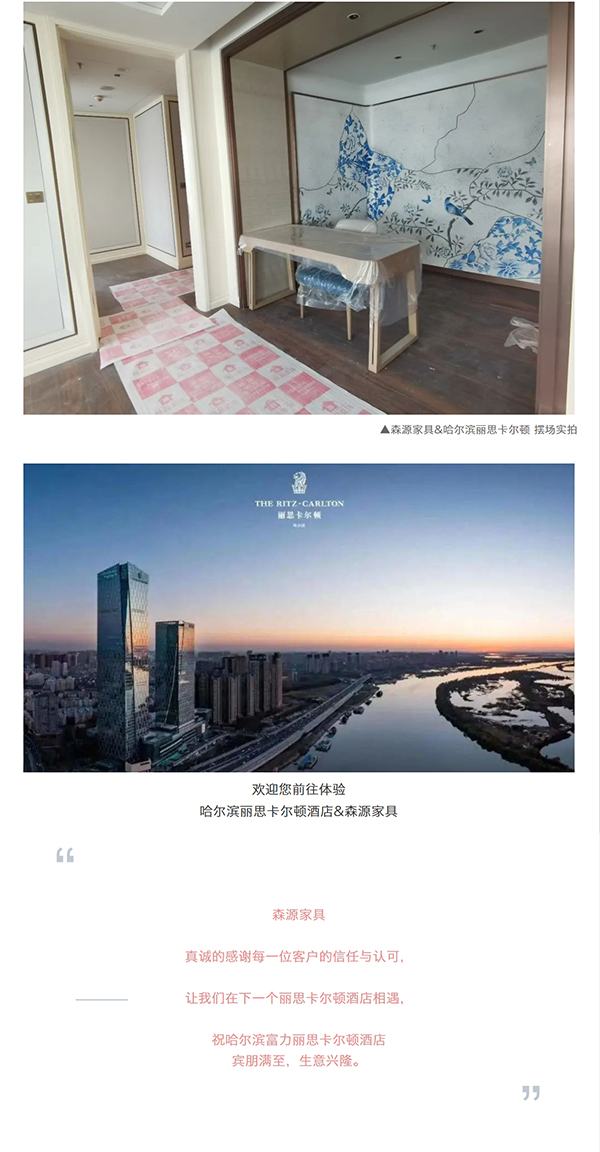 近兩年,森源家具憑借強大的服務體系,同步打造了【哈爾濱、墨爾本、約旦】三大麗思卡爾頓酒店;
