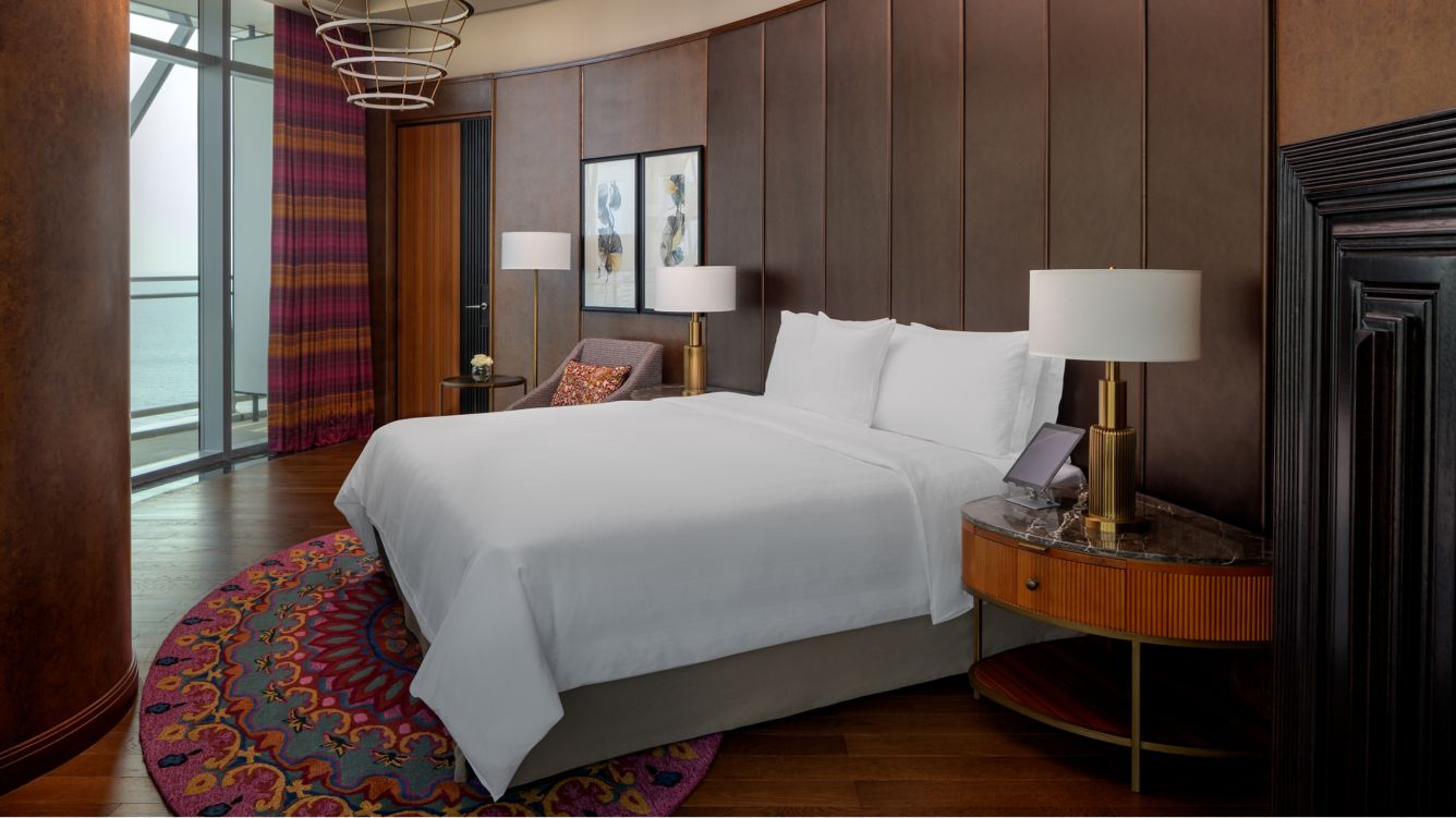 酒店共設(shè)客房和套房352間,每間都配有私人陽臺,可欣賞到印度洋或貝拉湖的美景。