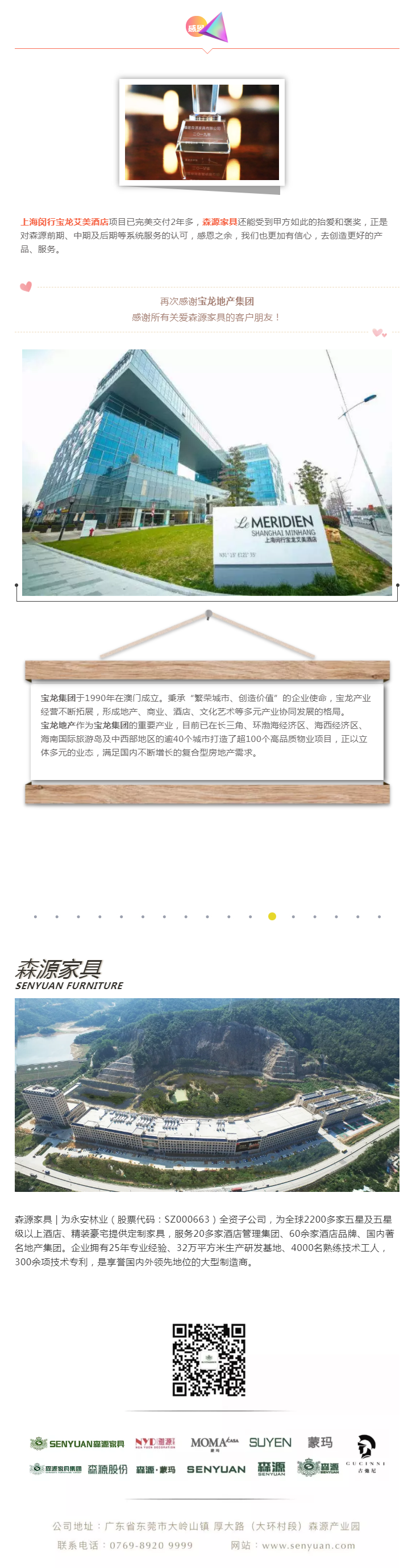 內心充滿著謝意與感動,十分感謝我們敬愛的客戶寶龍地產對森源家具的關愛和認可!