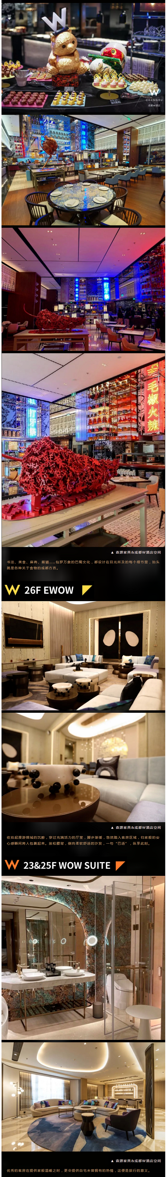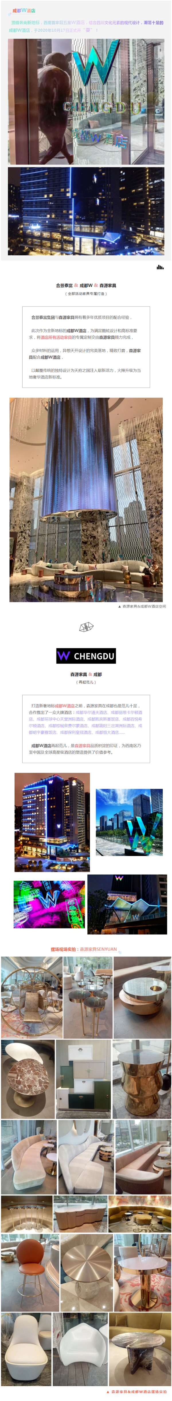 合景泰富集團與森源家具擁有著多年優質項目的配合經驗, 此次作為全新地標的成都W酒店,為滿足酷炫設計和高標準要求,將酒店所有活動家具的專屬定制交由森源家具傾力完成, 眾多材料的運用,異想天開設計的完美落地,精致打磨,森源家具配合成都W酒店, 以顛覆傳統的獨特設計為天府之國注入嶄新活力,火辣升級為當地奢華酒店新標準。 打造新奢地標成都W酒店之前,森源家具在成都也是范兒十足,合作推出了一眾大牌酒店:成都華爾道夫酒店、成都麗思卡爾頓酒店、成都環球中心天堂洲際酒店、成都凱賓斯基飯店、成都百悅希爾頓酒店、成都棕櫚泉費爾蒙酒店、成都簡陽三岔湖洲際酒店、成都明宇豪雅飯店、成都保利皇冠酒店、成都恒大酒店…… 成都W酒店再起范兒,是森源家具品質積淀的印證,為西南區乃至中國及全球高星級酒店的塑造提供了價值參考。 酒店潮堂中庭的互動藝術裝置由日本設計團隊team Lab設計和打造。前臺則“頂著”色彩斑斕的巨大光環,但細看卻發現里面呈現的藝術效果,帶著成都市花芙蓉的概念,也有四大名繡之一的蜀繡的影子。 深處內陸腹地的天府之國,雖享一隅安逸,嫻靜之中卻孕育出無數廣傳四海的美食。先祖傳遞給我們的味道,滋養著一代居民的味蕾,千年之間,從未厭乏;而如今,傳統的中餐風味將在W酒店這時尚的尖端再次盛放。餐廳中現代的光影為舌尖添上色彩,包圍著飯桌的變幻、吹拂著唇齒間的律動。 繽紛呈現的森源家具,不足以一窺這次項目的精彩——實地的魅力不止于此——遠超上述小例的精彩碎片,共同拼裝起了W酒店這一最完美的城市新名片。